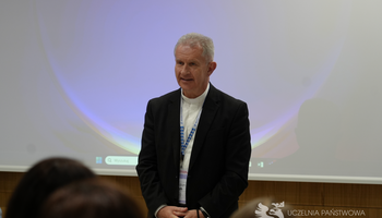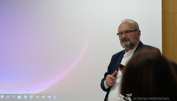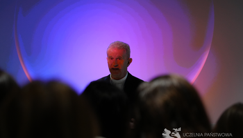 prof. dr hab. Bohdan Prach z Ukraińskiego Uniwersytetu Katolickiego we Lwowie, prezentujący temat „Bezpieczeństwo społeczne a rozwój AI – doświadczenia czasu wojny”.
