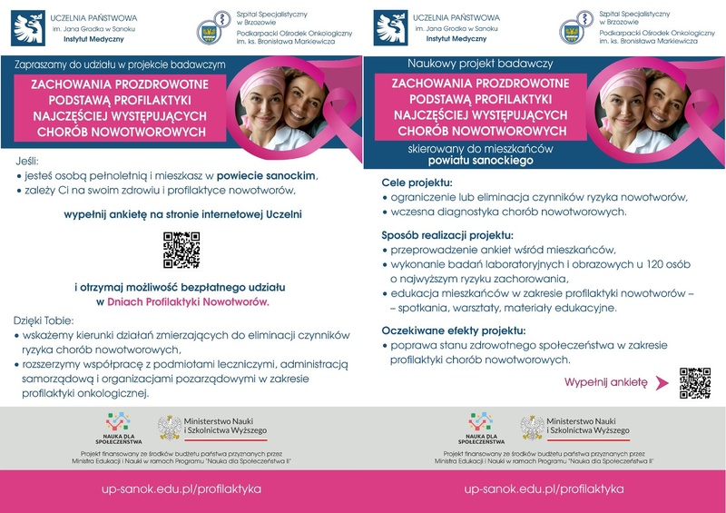 Z satysfakcją informujemy, że jednostki samorządu terytorialnego z terenu powiatu sanockiego włączają się w działania promujące projekt pn. „Zachowania prozdrowotne podstawą profilaktyki najczęściej występujących chorób nowotworowych”, realizowany w ramach programu „Nauka dla Społeczeństwa II”.